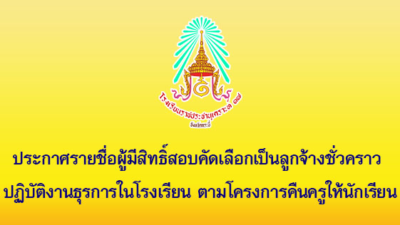 ประกาศรายชื่อผู้มีสิทธิ์สอบคัดเลือกเป็นลูกจ้างชั่วคราว ปฏิบัติงานธุรการในโรงเรียน
