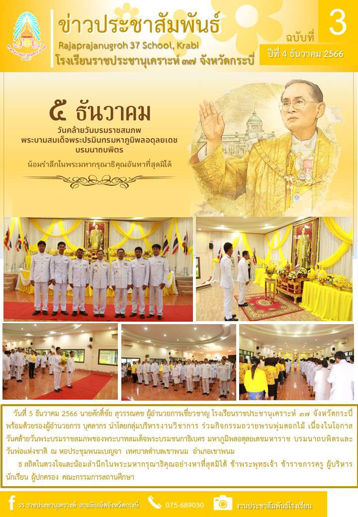 วันที่ 5 ธันวาคม 2566 เนื่องในวันคล้ายวันพระราชสมภพของพระบาทสมเด็จพระบรมชนกาธิเบศรมหาภูมิพลอดุลยเดชมหาราชบรมนาถบพิตร