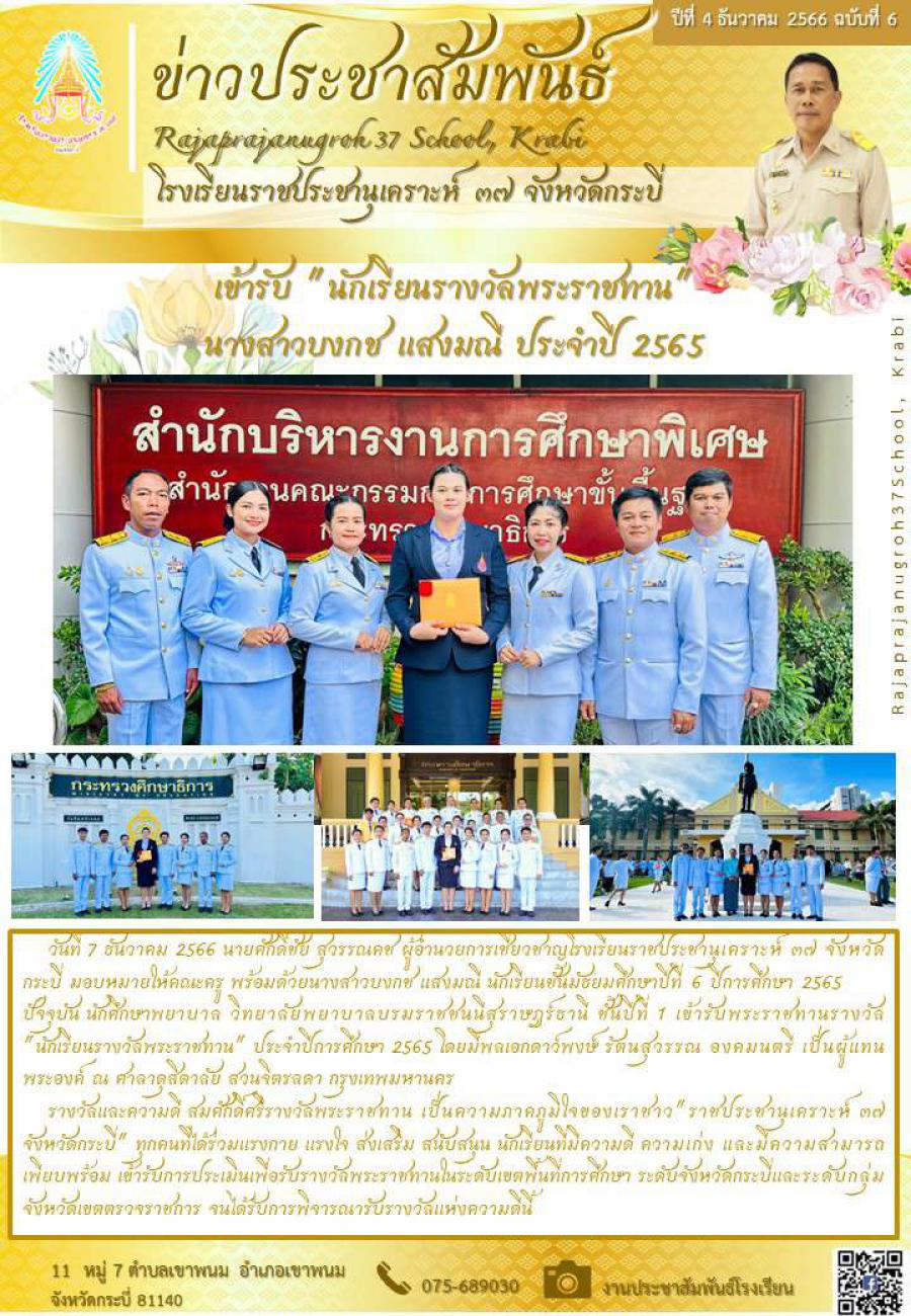 เข้ารับ "นักเรียนรางวัลพระราชทาน" นางสาวบงกช แสงมณี ประจำปี 2565